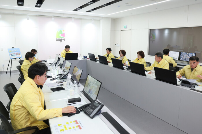 [의왕=송윤근 기자] 경기 의왕시(시장 김성제)는 12월 8일 시청 재난안전상황실에서 안치권 의왕시부시장 주재로 겨울철 대설·한파 대응을 위한 복합재난(폭설·정전) 불시 훈련과 제설 대응체계 전반을 점검하는 상황 점검 회의를 개최했다.