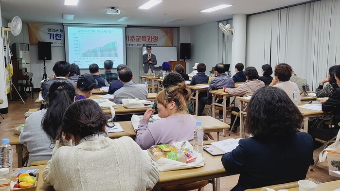 | ▲ 영암군 농촌신활력플러스추진단, 지난 26일 영암친환경농업교육관에서 교육생 40여 명 대상 ‘농촌신활력플러스사업 기찬 리더스 아카데미 기초 교육’ 실시 / 영암군 제공 |