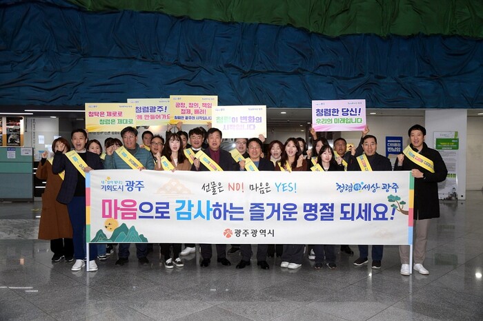 [광주=정찬남 기자] 광주광역시(시장 강기정)는 6일 시청 로비에서 출근하는 직원들을 대상으로 ‘설 명절 청렴 캠페인’을 벌였다.