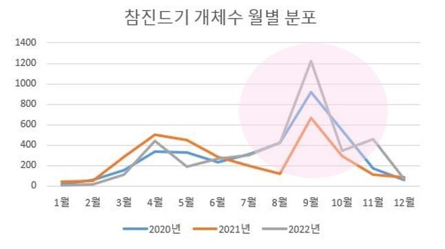 | ▲ 참진드기 개체수 월별 분포 / 광주광역시 제공 |