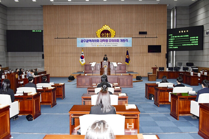 시의회 본회의장에서 개최된 개원식에는 30여 명의 대학생 모의의회 의원들과 정다은 의회운영위원장, 강수정 조선대학교 정치외교학과장 등이 참석했다.