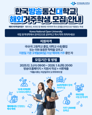 내년도 1학기 신편입생 모집은 12월 1일부터 2026년 1월 14일까지 진행되며, 고등학교 졸업자 또는 법령에 따라 이와 동등 학력이 있다고 인정되는 자면 수능 또는 내신 성적에 상관없이 누구나 지원(직장인, 개인사업자, 주부, 전문대학 졸업(예정)자 등의 요건에 충족하는 이들은 모집 요강에 따른 증빙서류를 첨부 필수) 가능하다.