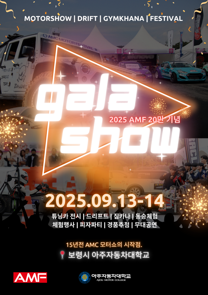행사를 총괄하는 모터스포츠전공 박상현 교수는 “15년 전 AMC 모터페스티벌이 처음 시작된 대학 캠퍼스에서 15주년 갈라쇼를 개최하게 되어 더욱 뜻깊다”며, “국내외 최정상급 60여 명의 선수들이 펼칠 짜릿한 퍼포먼스를 통해 AMF의 지속적인 발전을 응원하고자 한다. 자동차와 모터스포츠를 사랑하는 많은 분들이 우리 대학을 찾아 함께 즐기고 응원해주시길 바란다”고 전했다.