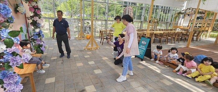 지난 수국길 축제 기간에는 수국 주제관을 열어 강진 홍보와 수국 교육 콘텐츠 및 체험활동을 진행했으며, 축제가 끝나며 유아숲 체험과 연계해, 온실에서 학습활동을 하며 군민들을 위한 특별한 공간으로 활용 중이다.