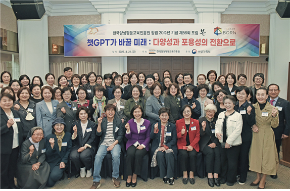 여성가족부 산하 한국양성평등교육진흥원(원장 장명선)은 창립 20주년을 기념하여 4월 21일(금) 오전 한국프레스센터(20층 프레스클럽)에서 열린 ‘2023년 제56회 포럼 본(本)’ 행사를 성황리에 마쳤다고 21일(금) 밝혔다.