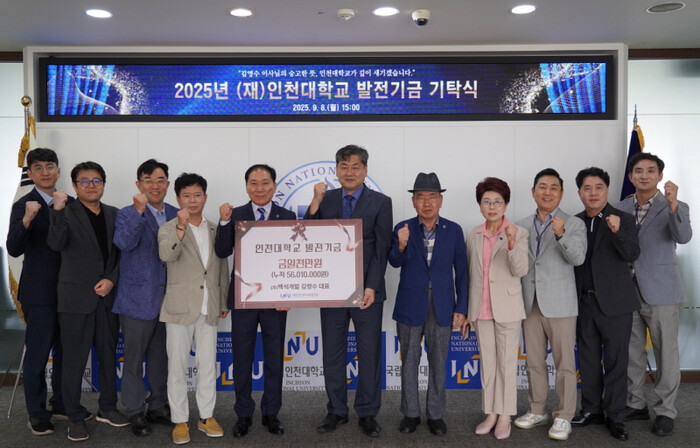 이인재 총장은 “그동안 인천대의 성장을 위해 각별한 정성과 헌신을 보여준 김영수 대표에게 진심 어린 감사를 전한다”며“기탁해준 기부금은 대학의 미래를 이끄는 소중한 밑거름으로 삼겠다”고 말했다.