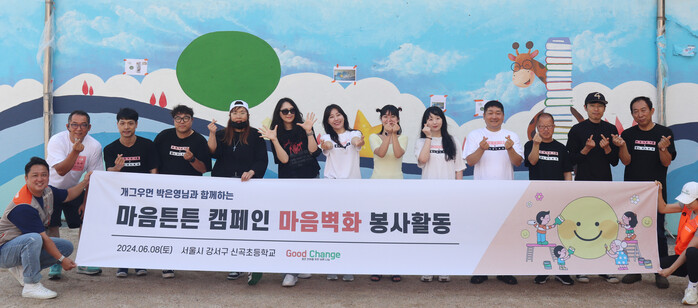 지난 6월 8일(토), 사단법인 좋은변화(이사장 홍민기)는 미녀 개그우먼 박은영 공식팬클럽 ‘그냥사랑’과 함께 서울시 강서구에 위치한 신곡초등학교에서 ‘마음 취약계층’을 위한 마음튼튼 캠페인 ‘마음벽화’ 봉사활동을 진행했다고 밝혔다.