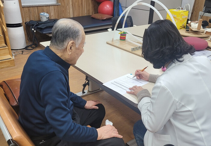 | ▲ 노인 안질환 의료지원 신청서 작성 / 강진군 제공 |