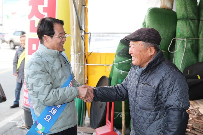 이날 김동수 강진읍 자율상권 협동조합장 등과 함께 어깨띠를 두르고 상가 약 100개소를 방문해 일일이 상인들과 소통하며 따뜻한 명절 인사를 주고받았다.