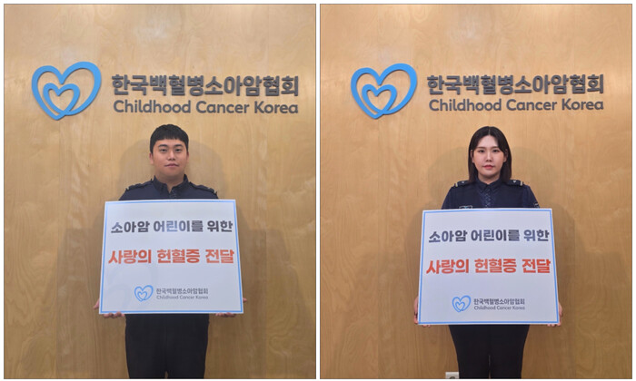 인천국제공항보안(주) 외곽보안사업소에서 근무하는 이유정·전진용 대원이 최근 한국백혈병소아암협회(서울 마포구)에 헌혈증 50매를 기부했다.