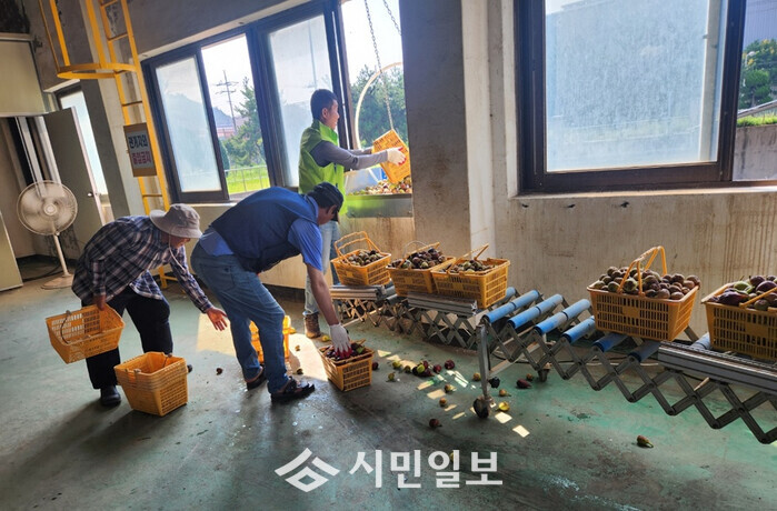일정 비용을 지급하는 기존 유상 수매 방식에서 2024년부터 ‘무상 처리 작업단’ 방식으로 전환한 영암군은, 14명을 채용해 무화과 수거·분류·계측·운반·기기운용 등 폐기 작업 전반을 맡긴다.