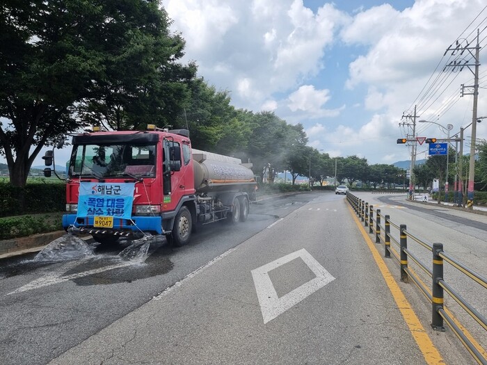 | ▲ 여름철 폭염피해 예방 위해 살수차 운행 / 자료사진=해남군 제공 |