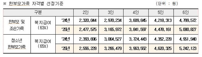 특히 한부모가족의 지원 대상 확대를 위해 자동차 재산 기준이 기존 500만 원 미만에서 1000만 원 미만으로 완화된다. 이에 따라 차량을 보유한 한부모가족의 복지급여 수급 가능성이 높아질 것으로 기대된다.
