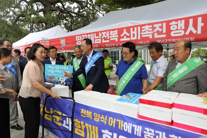 또한 명현관 해남군수와 박지원 국회의원, 이성옥 해남군의회 의장과 군의원, 박병찬 군 수협장 등을 비롯한 각계 인사들도 참석해 전복소비 촉진에 힘을 보탰다.