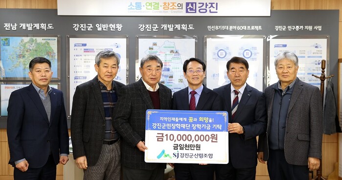 지난 30일 강진군에 따르면, 강진군 산림조합에서 1000만 원 장학금을 강진군민장학재단(강진원)에 장학금을 기탁했다.