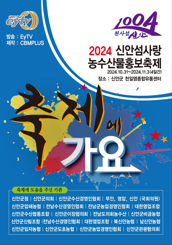 신안군 농·수산물 전문 기관인 농협과 수협과 단체들이 참여하는 이번 축제는 총 4부로 나눠 진행되며, 실향민 채널TV(EY TV)를 통해 소개 될 예정이다.