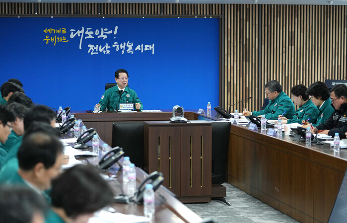 [남악=황승순 기자]김영록 전라남도지사는 2일 시무식 대신 중앙재난안전대책본부 영상회의에 참석해 사회복지공동모금회 성금으로 유가족 생계비 지급 등을 건의하고, 제주항공 여객기 사고 대책회의를 열어 유가족 지원 상황을 점검했다.