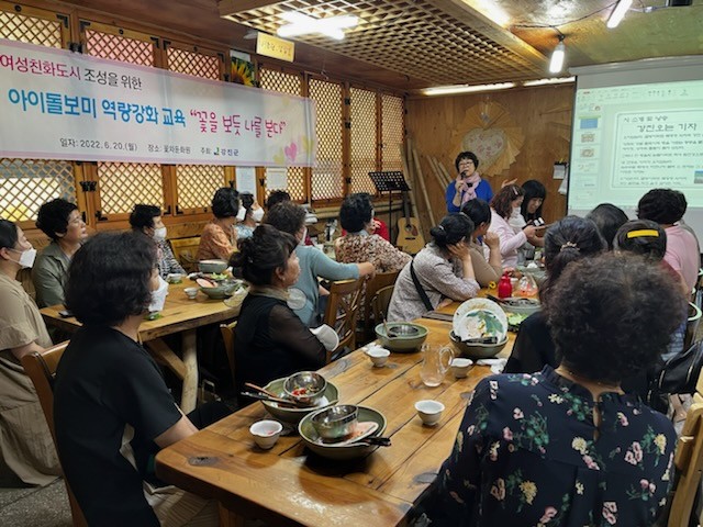 [강진=정찬남 기자] 전남 강진군은 지난 20일 강진군가족센터 아이돌보미 21명을 대상으로 정서치유 프로그램 ‘꽃음료와 꽃비빔밥 만들기 취미교실’을 운영했다.