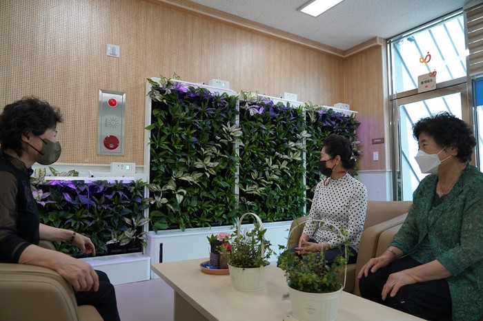 | ▲ 해남군보건소 치매안심센터 휴게 공간 벽면에 설치된 스마트가든 / 사진=해남군 제공 |