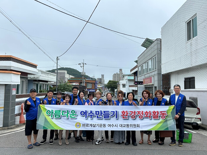 [여수=황승순 기자]대교동 바르게살기운동위원회(위원장 배민우)는 지난 19일, 봉산동 게장백반거리 일원에서 청결 활동과 캠페인을 실시하며 깨끗한 도심 환경 조성에 앞장섰다.