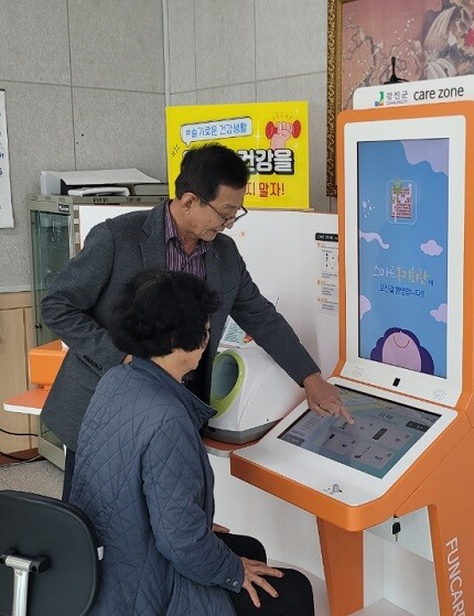 | ▲ 지역주민이 스마트 헬스케어 건강측정기 등을 활용해 자가검진을 하고 있다. / 강진군 제공 |