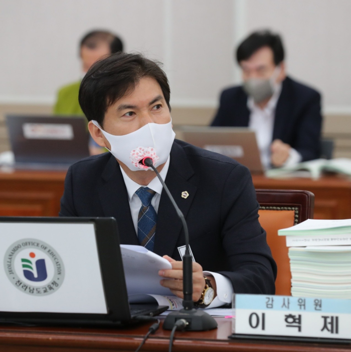 전라남도의회 교육위원회 이혁제 의원(목포4)은 3일 2021년 전남교육청 행정사무감사에서 여수 특성화고 현장실습생 사망사건과 관련해 해당 학교 교장을 출석 요구해 교육 당국과 해당 기업의 문제점을 강도 깊게 지적하며 사고 재발 방지책 마련을 주문했다.