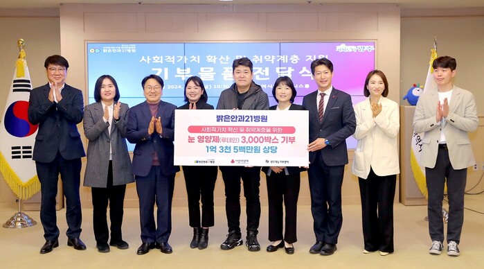 [광주=정찬남 기자] 광주광역시는 밝은안과21이 1억3500만 원 상당의 눈 영양제를 기부했다고 22일 밝혔다.