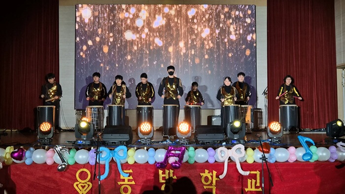 | ▲ 동방학교 중학생 난타공연. 사진 동방학교 제공 |