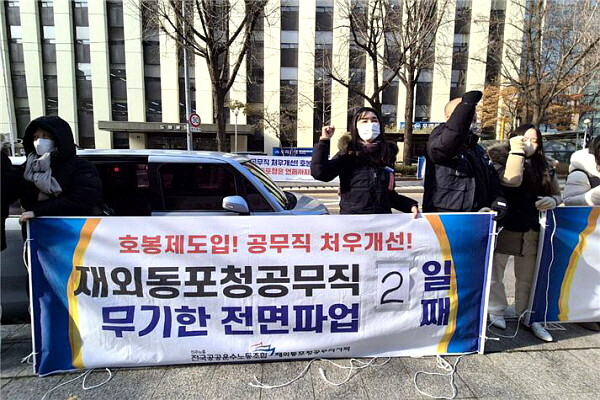 한편, 재외동포청에는 일반·민원 사무, 운전, 비서 등을 담당하는 공무직 직원 16명이 있다. 이 중 14명이 공무직노조 소속이다. 이들은 16일 송도 본청에서 파업출정식을 진행하고, 17일 외교부 앞에서 약식 집회를 이어나가고 있다.