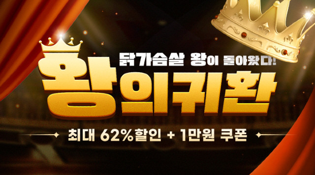 먼저 메인 프로모션인 ‘왕의 귀환’은 ‘진짜 닭가슴살의 왕이 돌아왔다!’ 라는 컨셉으로 기획전 초특가 프로모션이다. 랭킹닭컴의 인기 제품들로 구성한 패키지와 패키지 전용 선착순 쿠폰 이벤트를 준비했다.