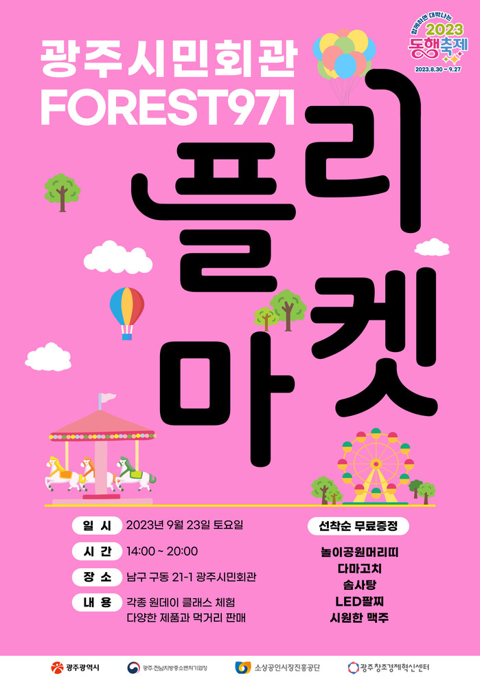 광주광역시(시장 강기정)는 ‘광주시민회관 포레스트(Forest)971 플리마켓’을 오는 23일 오후 2시부터 8시까지 광주시민회관 일원에서 개최한다.