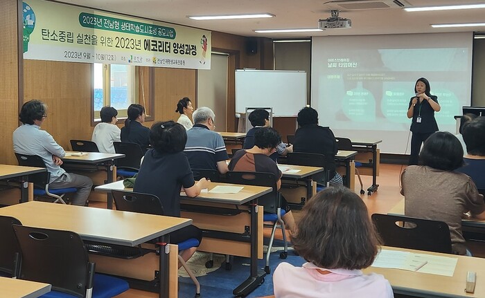 [강진=정찬남 기자] 전남 강진군이 기후 문제에 대한 심각성을 공유하고 환경 문제에 대한 인식 확산을 위해 탄소 중립 교육 과정인 전남형 생태학습도시 조성 공모사업 에코리더 양성과정을 지난 4일 시작했다.