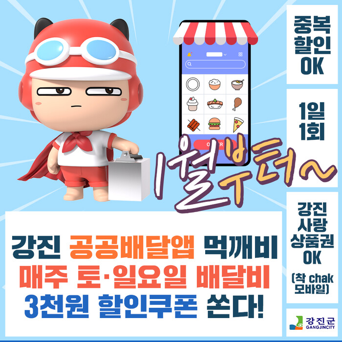강진원 강진군수는 “반값 강진 관광의 해로 선포한 2024년에도 강진군만의 특색있는 축제를 통해 주말 배달비 할인 이벤트뿐만 아니라 공공배달앱 먹깨비 특별할인 이벤트를 추진함으로써 강진군민과 강진군 소상공인에게 도움이 될 수 있도록 하겠다.”고 밝혔다.