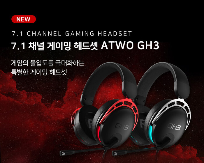 프리미엄 헤드셋 GH3는 가상 7.1 채널과 초대형 53mm 네오디뮴 드라이버(MD53)를 탑재한 USB 유선 제품으로, 뛰어난 방향감과 입체감 있는 사운드 설계를 갖췄다. 308g의 경량 설계와 부드러운 메모리폼 헤어밴드, 세밀한 길이 조절이 가능한 이어패드로 장시간 착용에도 부담이 적으며, 고급 아연 소재를 적용해 스크래치에 강하고 오랜 시간 깔끔한 외관을 유지한다.