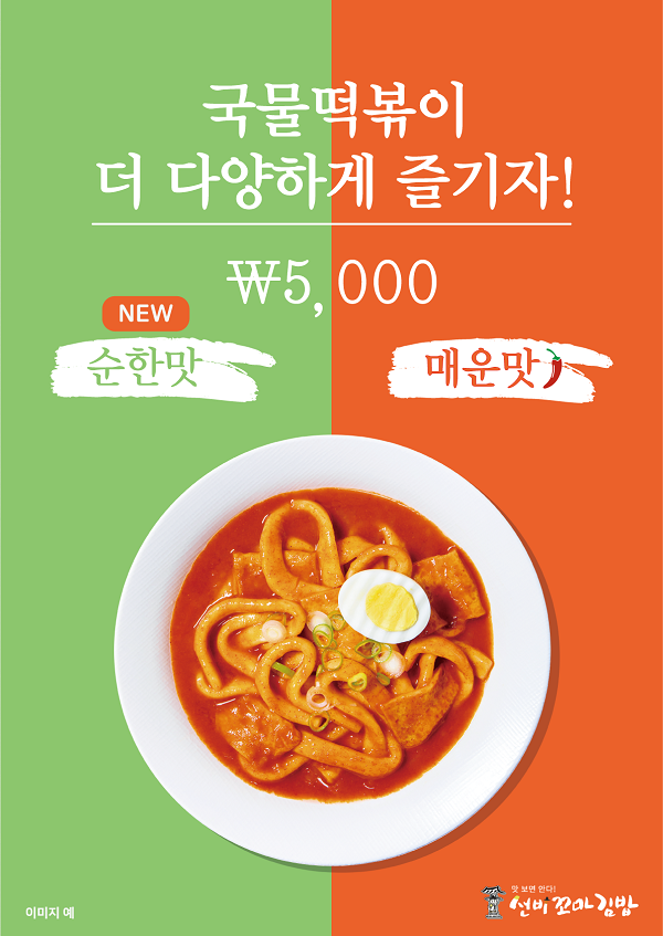 한편 메뉴개발팀은 순한맛 출시 후 판매율을 바탕으로 다양한 고객 선호도를 조사하여 다양한 메뉴 개발을 지속적으로 이어 갈 예정이다. 선비꼬마김밥 신메뉴 ‘국물떡볶이 순한맛’은 직영점을 포함한 전국 가맹점에서 맛볼 수 있다.