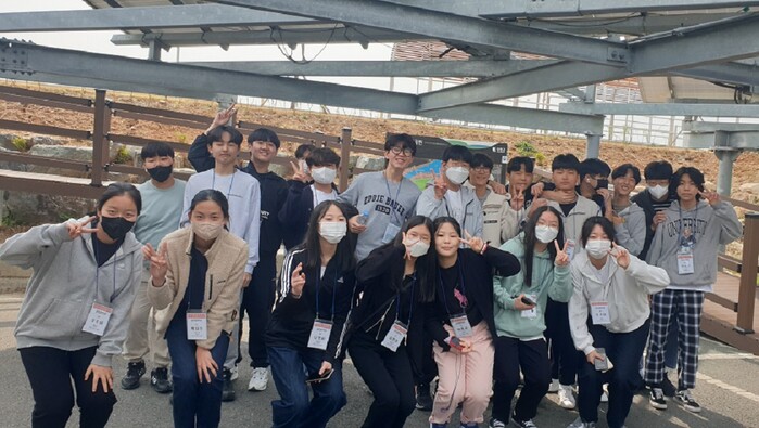 | ▲ 광주시 숭의중학교 학생들이 지난 3월 30일 강진군이 운영하고 있는 2023년 학생푸소 체험에 참여한 후 기념촬영을 하고 있다. / 강진군 제공 |