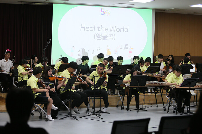 | ▲ 홀트아동복지회 산하 특수교육기관 홀트학교의 발달장애학생 오케스트라 ‘예그리나&국악 오케스트라’가 지난 23~24일 국립산림치유원 다스림홀에서 열린 2025 산림문화공연 ‘힐링의 숲, 음악의 밤’을 통해 깊은 감동의 무대를 선사했다. |