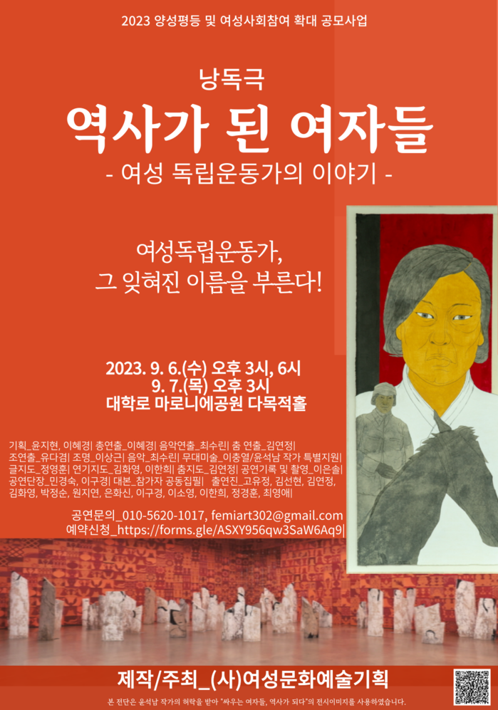 이번 낭독극은 사)여성문화예술기획이 2023 양성평등 및 여성사회참여 확대 공모사업으로 진행하는 '낭독극 만들기와 공연-싸우는 여자들, 역사가 되다' 사업의 결과물로, 여성문화예술기획이 지난 5월 초 모집한 시민참여자 20여명과 함께 만든 연극이다.