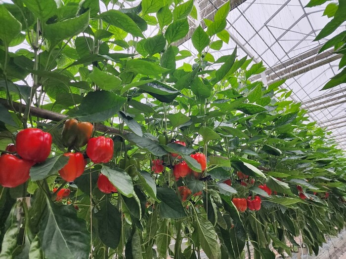 | ▲ 농업회사법인 (유)해담토 하우스에서 재배되고 있는 영암산 파프리카 / 영암군 제공 |