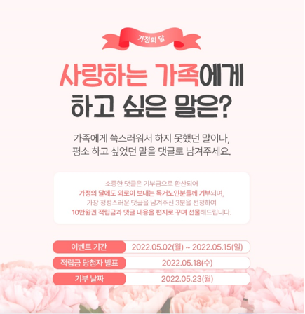이벤트 참여 방법은 간단하다. 오늘(2일)부터 15일까지 영롱 공식 홈페이지에 접속해 본 이벤트 게시판 내 사랑하는 가족에게 하고 싶은 말을 댓글로 남기면 이벤트 참여신청이 완료된다. 참여한 사람들 중 3명을 선정해 10만원권의 적립금과 댓글 내용이 담긴 편지를 선물한다.