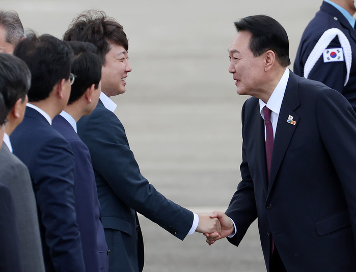 앞서 이 대표는 전날 오후 방송된 JTBC 썰전 라이브에 출연해 "지난번에(윤 대통령이 출국할 때) 간소화해서 한다길래 허레허식 싫어한다고 해서 안 갔더니 워낙 확대 해석이 많았다. 충돌하는 일정도 없어서 다녀왔다"고 윤 대통령을 마중 나간 이유를 설명했다.