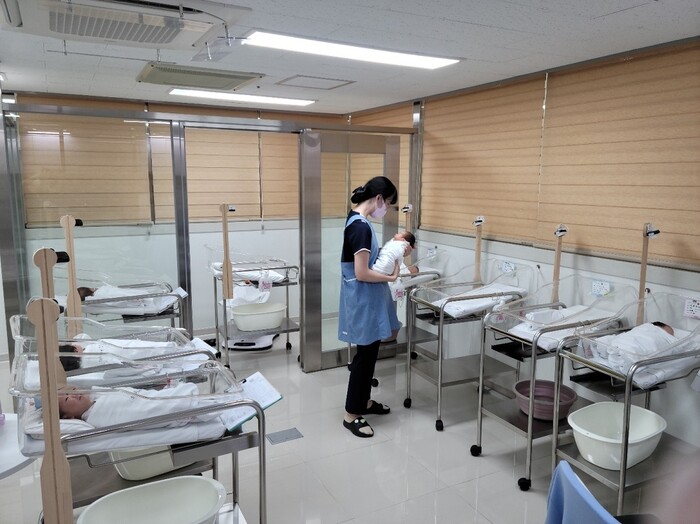 | ▲ 출생아를 돌보고 있는 조리원 관계자 / 강진군 제공 |
