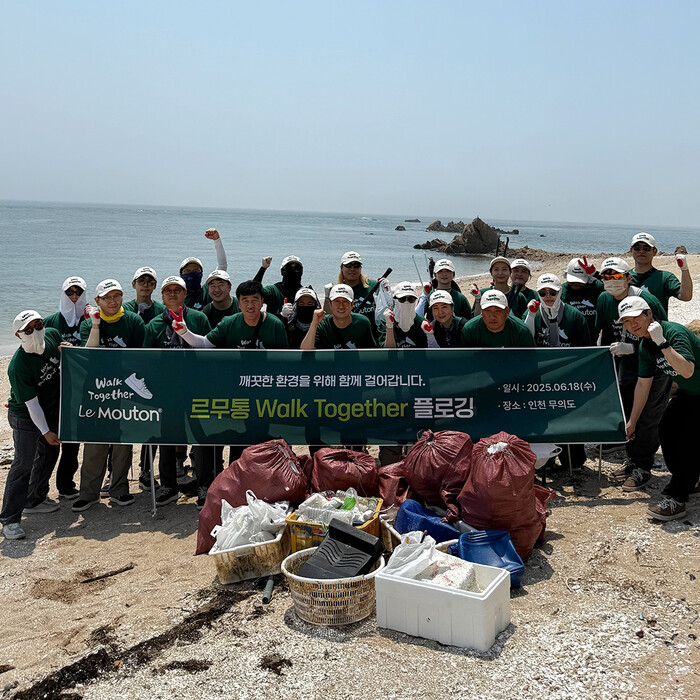 자연소재 메리노 울을 비롯 다양한 친환경 소재를 활용한 편한 신발 브랜드 ‘르무통(LeMouton)’ 이 6월 18일, 인천 무의도에서 ‘플로깅’을 통해 해변 쓰레기 정화 활동을 진행하였다고 밝혔다.