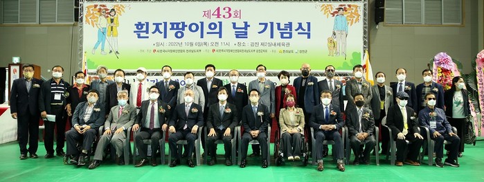 [강진=정찬남 기자] (사)한국시각장애인연합회 전남지부 주관으로 '제43회 흰지팡이의 날’ 기념식이 지난 6일 강진종합운동장 제2 실내체육관에서 열렸다.