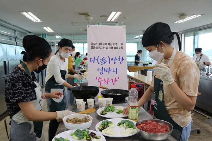 “다양한 엄마의 ‘수라간’”이라는 이름처럼 베트남, 캄보디아, 일본, 태국 출신 결혼이민여성이 참가한 이번 한식 요리교실은 총 9회기로 이날부터 오는 10월까지 매주 화요일 오후 2시에 강진군여성회관 조리실에서 진행한다.