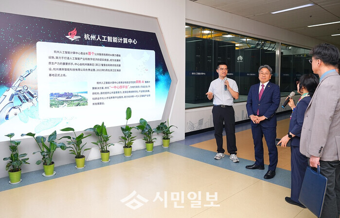 대표단은 저장대, 알리바바 등과 연계해 산업벨트의 중심 역할을 하는 항저우AI컴퓨팅센터 운영 모델을 벤치마킹하기 위해 센터 운영 규모, 방식 등에 대해 꼼꼼히 살펴봤다.
