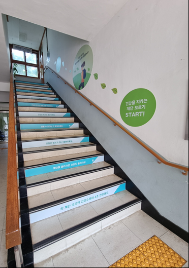특히, 이용자들의 눈높이에 맞춘 문구와 이미지를 계단 전면과 벽면에 부착했다. 건강계단 설치로 건강생활 실천 정보 알림과 걷기 실천의 중요성을 알리는 데 효과가 클 것으로 기대된다.