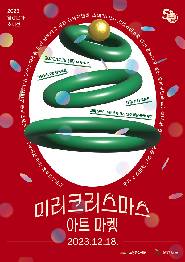 [시민일보 = 이창훈 기자] 서울 도봉구 도봉문화재단은 오는 18일 도봉구청 선인봉홀에서 ‘미리크리스마스 아트 마켓’을 진행한다고 밝혔다.