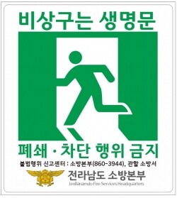 | ▲ 비상구폐쇄 차단행위 금지 안내 이미지 / 해남소방서 제공 |