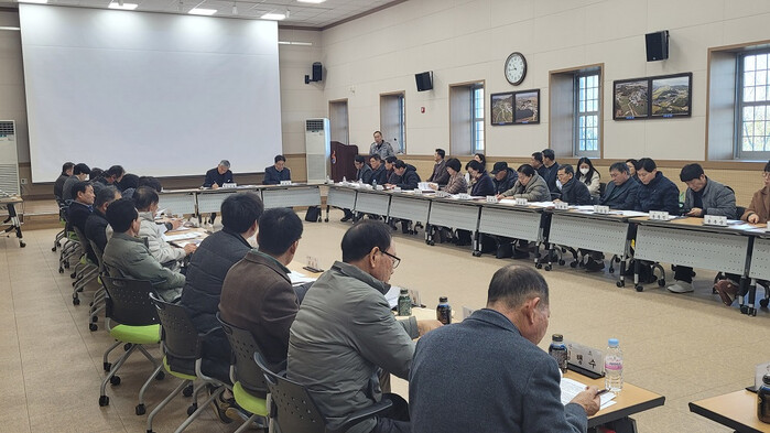 | ▲ 해남경찰서 황산파출소, 13일 오전 황산면사무소 2층 회의실에서 관내 43개 마을 이장 대상 외국인 근로자 무면허 운전행위 단속 및 방범용 CCTV 점검 협조 등 범죄예방 협조 간담회 개최 / 해남경찰서 제공 |